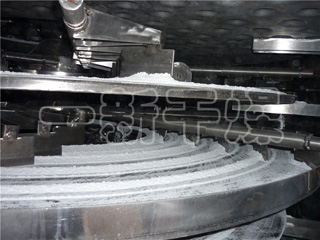 2.3盤面凹凸不平:針對同行業廠家產品中這一難以避免的問題,我公司進行了多次試驗,^終很好的解決了這一難題。大盤面外擋料圈及小盤面內落料圈均為鋼板一次性鼓壓成型,大盤外沿上壓制為圓弧,小盤面下壓制為圓弧,使盤面硬性大大加強的同時也更加平整,更好的防止了物料的翻料。